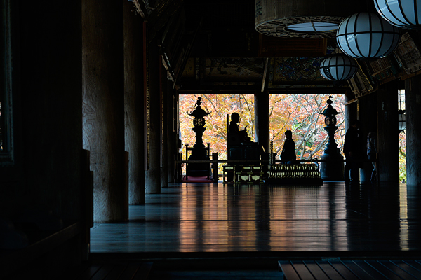 続いて「本堂(観音堂)」へ。初瀬山中腹の懸崖に建つ大殿堂で、舞台からの眺望は雄大そのもの。国宝に指定されている。ほの暗い内陣の中には、本尊の十一面観世音菩薩像が祀られており、その無限の慈悲を秘めたまなざしに思わず手を合わせる。奈良時代、徳道上人の造立で、右手に錫杖、左手に水瓶を持つ。身の丈は三丈三尺(約10m)。度重なる火災で炎上しているが、頂上仏のみが焼け残ってきたと言う。今の観世音菩薩像は、天文7年(1538年)に仏師運宗らによって造立されたものだ。