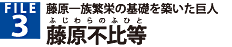 「乙巳(いっし)の変」で中大兄皇子とともに蘇我入鹿を暗殺した中臣(藤原)鎌足の次男。父の賜った“藤原姓”を自分の子孫で独占できるよう画策、他の一族はすべて元の中臣姓へ戻した。