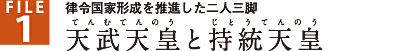 はじめ皇太子の地位にあったが、天智天皇が子の大友皇子を後継者にしようとした意向を察知して、出家。吉野山中に隠棲し、機会を伺って挙兵した。壬申の乱である。勝利を治めたことで、飛鳥浄御原宮で即位した。