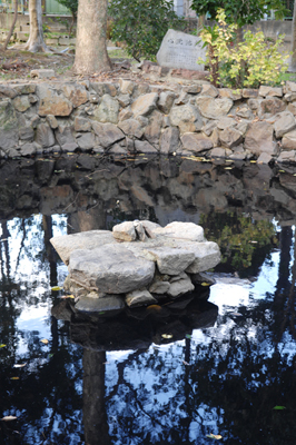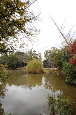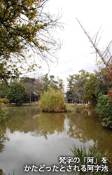 弘法大師が築造したという阿字池には七不思議が伝わる。いずれから見ても地形が見渡せない、百日の干ばつでも水が枯れない、池中に藻やきぐさが生じない、木の葉が浮かばない、蛭が棲まない、蛙が鳴かない、池の水は田の水より少し軽い、とか。さて、何を意味しているのだろう。