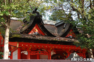 奈良盆地のほぼ中央に鎮座し、広大な社域を誇った大和屈指の大社。社伝によれば祭神は神八井耳命(かむやいみみのみこと)、初代・神武天皇こと神日本磐余彦命(かむやまといわれひこのみこと)他二座。