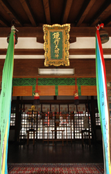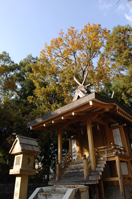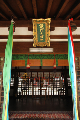 やがて大神は伊勢へ鎮座。遷した神鏡に代わって新たな鏡を作ったのが、石凝姥命の子孫・鏡作部(氏)。完成した鏡は内侍所に納められ、試鋳された像鏡は天照国照彦火明命と称えられて同社に奉祀された。神社には神宝として「三神二獣鏡」が今も伝わる。