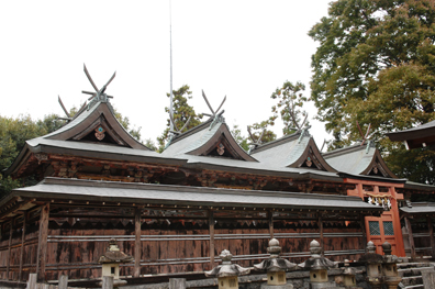 崇神天皇の御代。天皇の大殿内に祭祀していた天照大神を「同床共殿堪え難く」、宮中より出すこととなったという。ここで『日本書紀』は大神を斎宮たる皇女に“託けた(つけた)”と書くが、社伝では天照大神そのものである三種の神器の一つ・八咫鏡(やたのかがみ)を出したとある。