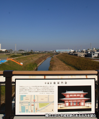 ぜひ方位磁石を持参していただきたい。晴れた日には朱雀門まではっきり見通せる羅城門橋の上に立ち、平城宮跡の方を望むと、磁石の針は北を指し示す。羅城門と朱雀門が南北に真っすぐ並んでいたことを実感!