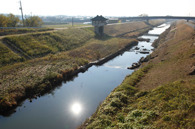 入り組んだ路地の左右に立ち並ぶ民家の土壁に沿って水をたたえる様子は、なんとも風情がある。