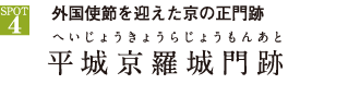 羅城門は、平城京の中央を南北に通る朱雀大路の南端に建てられた京の正門だ。当時は、唐や新羅などの使節賓客がこの羅城門から入京していたといい、『続日本紀』にもその記述が残る。昭和44~47年の発掘調査にて門基壇等が出土し、佐保川西側堤防の真下に位置したことがわかった。その規模は、桁行五間(約26m)、梁間二間(約10m)といわれていたが、最近では門の正面が七間(約35m)であったという説が上った。
