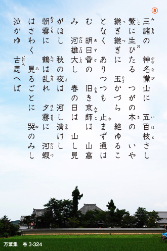 赤人が詠んだのは、平城京にて天平文化が華開いた奈良時代。藤原京よりさらに前の都であった飛鳥は、ひっそりと静かに時を刻んでいたのだろう。飛鳥の自然を詠むことで往時を懐かしんでいる。