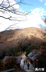 二上山は大阪と奈良の県境にあり、かつては「ふたかみやま」とも呼ばれていた。雄岳と雌岳が対となり、美しい山容を成している。雌岳の標高は474mだ。雄岳から雌岳へ向かうには、トイレや売店(不定休)、ベンチがある「馬の背」までいったん下って、また少し登ることになる。「馬の背」とは、雄岳と雌岳の双峰の間にできる凹部が馬の背中のように見えることから、そう呼ばれる。