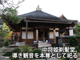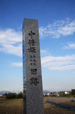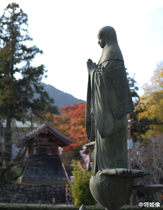 藤原鎌足の血をひく中将姫は、美貌と才能に恵まれ、嫉妬した継母から暗殺を企てられ、17歳で出家した。當麻寺は女人禁制だったため入山は許されなかったが、観音菩薩の加護を信じて一心に読経を続けたところ、功徳によって岩に足跡が付き、これによって入山が認められ、「法如(ほうにょ)」という名を授かった。中之坊には、中将姫が髪を剃り落とした「剃髪堂」や、姫の足跡のついた「誓いの石」が残る。