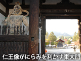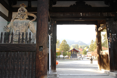 同じく国宝指定を受ける本堂は、威風堂々たるたたずまい。中将姫が織り上げたという當麻曼荼羅(たいままんだら)を本尊として安置する。この曼荼羅は、姫が写経の功徳によって見えた極楽浄土の光景を壮大な規模で再現したもの。姫は縦横4mもの大きな當麻曼荼羅を一夜にして蓮糸で織り上げたという。