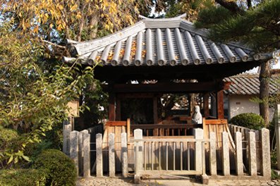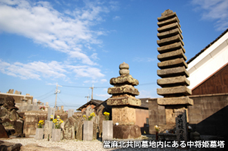 中将姫の墓塔は、寺近くの共同墓地に立つ。