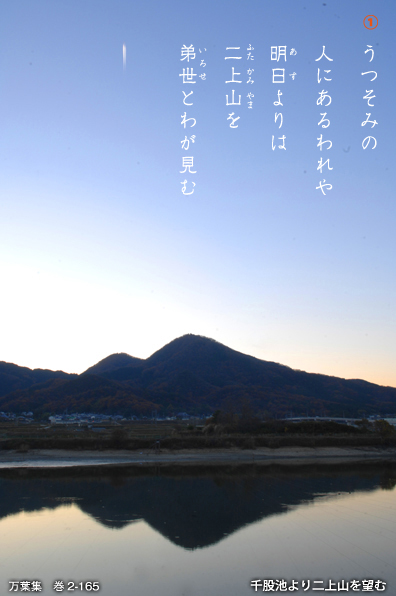 ①「現世の人である私は、明日から二上山をわが弟の君であると見て偲ぶだろう」。そして②「岸のほとりに咲く馬酔木を手折ろうと思うけれど、見せるべきあなたはもうこの世にいない」。