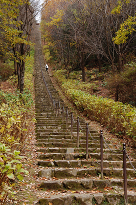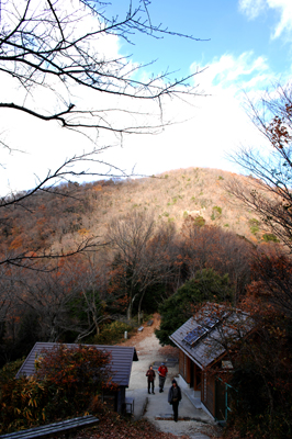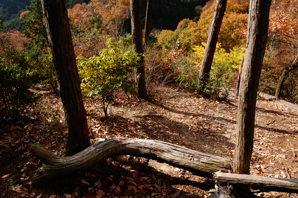 展望台の右手の小道を行く。木に直接書かれた「二上山へ」の文字を目印にして、その先へと進む。ここから雄岳まで急峻な道のりが40分近く続くが、歩くのに必死になって、周囲の景色を見逃してしまってはもったいない。都会にはない手付かずの自然や季節の移ろいを味わいながら、山頂を目指したい。