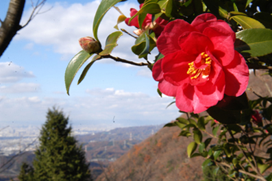 雌岳山頂からの眺望は、「素晴らしい」の一言に尽きる。大和三山をはじめとする大和平野、大阪・河内平野までもがパノラマに広がる。空が近く、澄み切った風が吹き抜ける。先ほどまでいた地上から遠く離れ、別天地に来たような思いがする。かつて二上山を訪れた古人の感慨が歌碑に刻まれる。⑤「大坂を越えてやって来ると、二上山では黄葉が流れていく。時雨が降っている」。