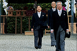 神武天皇山陵に御拝礼になる両陛下