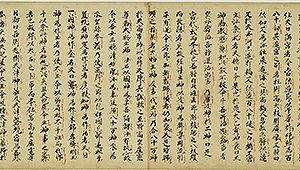 わが国最初の勅撰(ちょくせん)の史書とされ、720年に完成しました。文書は主に漢文で書かれています。神代(かみよ)から持統天皇11(697)年までの出来事を記し、全30巻で構成されています。