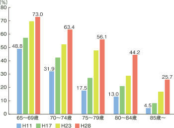 健康意識の向上や医療技術の進歩などにより、高齢になっても自分の歯が多く残るようになっています。その一方で、歯周病の人の割合も増えているため、歯周病対策が重要になっています。
