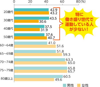 しかし、依然として全体の半数以上に運動習慣がない状況です。
