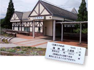 英国田園風のモダンな駅舎。縁起のいい駅名にちなんだ入場券を求める人も多いとか。