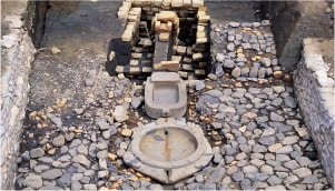 飛鳥寺の西側に位置する、我が国初の漏刻(ろうこく)台(水時計台)と想定されている遺構です。『日本書紀』では、斉明天皇6(660)年に、当時皇太子であった中大兄皇子が漏刻を作り、初めて時刻を報(しら)せたと記されている場所です。この漏刻は非常に大きい装置で、階上には時を知らせる鐘がある2階建ての建物だったと推定されています。