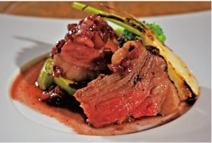 - 牛肉を食べやすい大きさに切り、皿に盛りつけて、8をかけ、お好みで付け合わせを添えて完成。