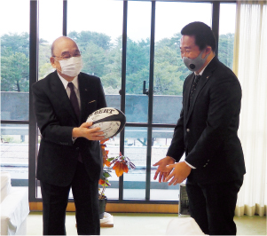 1月27日に岡田副学長、森下部長、小松監督、松岡主将が県庁を訪問し、優勝の喜びと今後の抱負を述べられました。