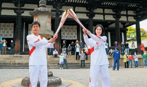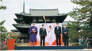 オリンピック聖火リレーが、4月11日・12日の2日間にわたり、県内19市町村17区間で開催されました。両日とも晴天に恵まれ、196人の聖火ランナーが、「古代における『宮都』変遷・国際交流の歴史」、「国宝・世界遺産等の歴史文化遺産」、「南部・東部地域の豊かな自然」の各テーマで結ばれた春の大和路を聖火でつなぎました。