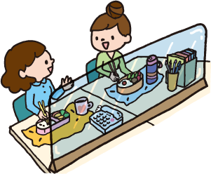 トイレやお風呂、食事で場所を共有する場合は、時間をずらして利用しましょう。