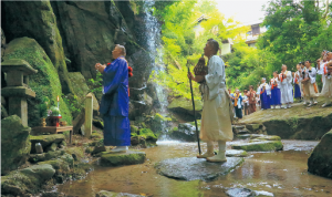 役行者が開いた修験道の寺院。参道の渓谷沿いには多くの石仏が彫り込まれています。