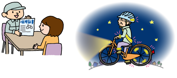 自転車保険には必ず加入しましょう!- 65歳以上の高齢者は、ヘルメットを着用しましょう!