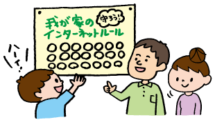 インターネット上の危険について子どもと保護者で話し合い、子どもに合わせた家庭のルールを作ることが大切です。ルールで縛るのではなく、なぜそのルールが必要なのかを、話し合いましょう。