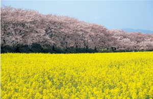 日差しも暖かくなる3月頃、橿原市にある藤原宮跡では、約2万5千平方メートルの花畑に鮮やかな黄色い菜の花が一面に広がります。桜の開花時期と重なれば、黄色とピンクが織りなす絶景をお楽しみいただけます。