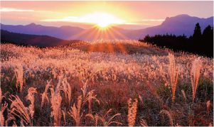 日本300名山の一つ俱留尊山。この山から亀の背に似た亀山を結ぶ西麓に広がるのが曽爾高原です。曽爾高原はススキで一面に覆われた草原で、秋にはススキの穂が日差しを浴びて銀色・金色に輝きます。