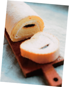 ほろ苦いカラメルゼリーとふわふわプリンムースをもちもちのスフレ生地で巻きました。