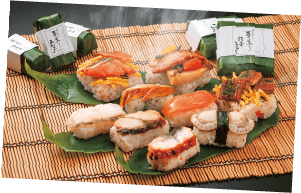 電子レンジで簡単!笹の葉の香りがふんわり、温めて美味しい9種類のお寿司を1個からお楽しみいただけます。