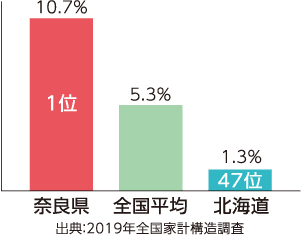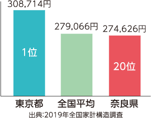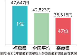 奈良県内で納められた地方消費税は、奈良県や県内市町村の収入となり、公共事業、医療・福祉の充実、学校教育などの財源として私たちの身近なくらしを支えています。奈良県の1世帯あたりの消費支出額は全国20位ですが、人口1人あたりの地方消費税収は最下位です。これは、消費が県外へ流出しているためといわれています。県内でお買い物やお食事をする人が増えれば、奈良県の地方消費税収も増加します。住みよい奈良県をつくるため、お買い物・お食事は県内でお願いします。