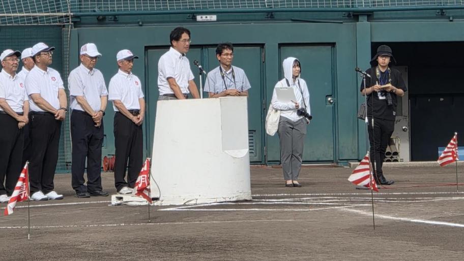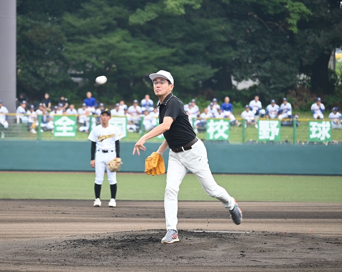 その後、知事は第1試合に先立ち、始球式を行い、会場は大きな拍手に包まれました。