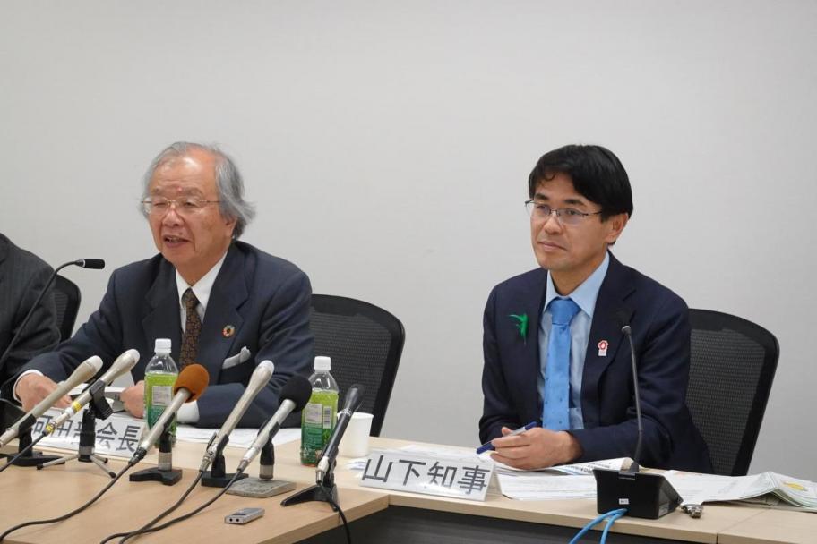 山下知事が会長を務め、国への提案要望をとりまとめたほか、平井鳥取県知事の案内のもと、鳥取砂丘コナン空港をはじめ各地の視察を行いました。