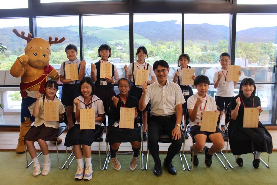 山下知事よりお祝いの言葉をかけ、記念撮影を行いました。