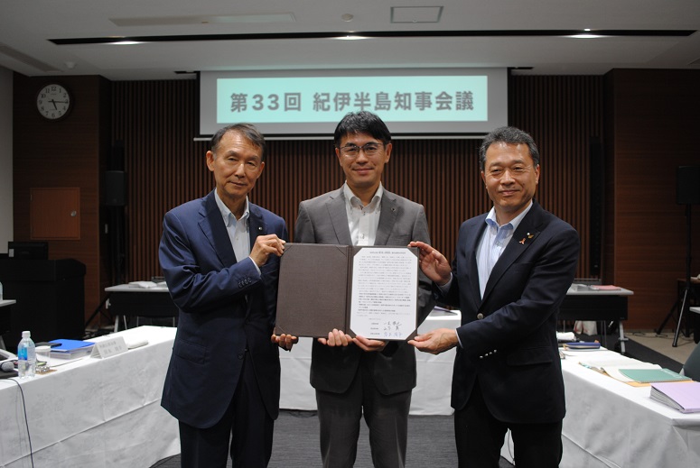 会議では、三重県、和歌山県、奈良県の三県知事が、紀伊半島地域の振興と活性化を図るため、広域的課題について協議しました。