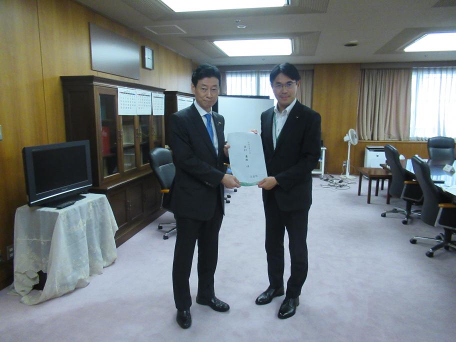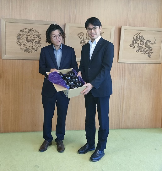 6月16日、大和の伝統野菜である「大和丸なす」を生産している丸三出荷組合(大和郡山市)が、山下知事を表敬訪問されました。