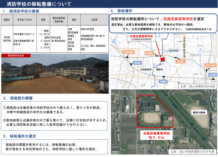 県全体の防災体制のあり方について、有識者にご意見をいただく場として、災害応急対策(防災拠点)検討部会(第8回)が開催されました。今回の検討部会では、これまでの検討経緯を踏まえ、「奈良県広域防災拠点運用計画(案)」「南部中核拠点の整備状況」、「奈良県消防学校移転整備基本計画 中間報告(案)」、について県から報告し、関西大学特別任命教授の河田惠昭部会長のコーディネートの下、各委員の間で専門的な知見により意見が交わされました。