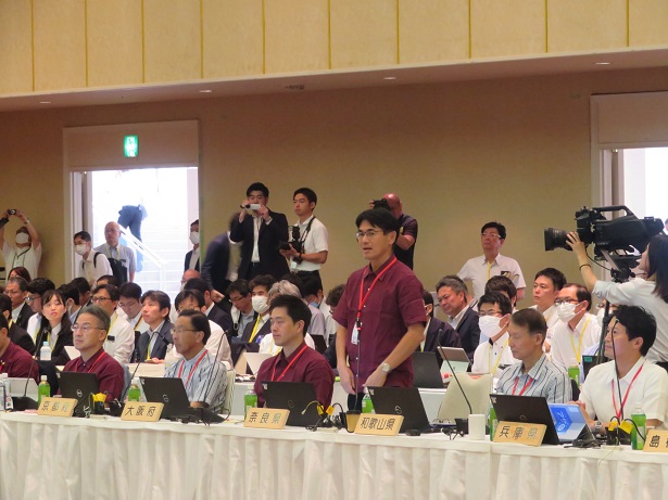 会議では、国に対する提言や各地域の取組について意見交換し、山下知事からは、万博会場内では奈良の文化・観光等を発信し、奈良県の認知度を向上させるほか、県内でもタイアップイベントを開催したい旨の発言がありました。