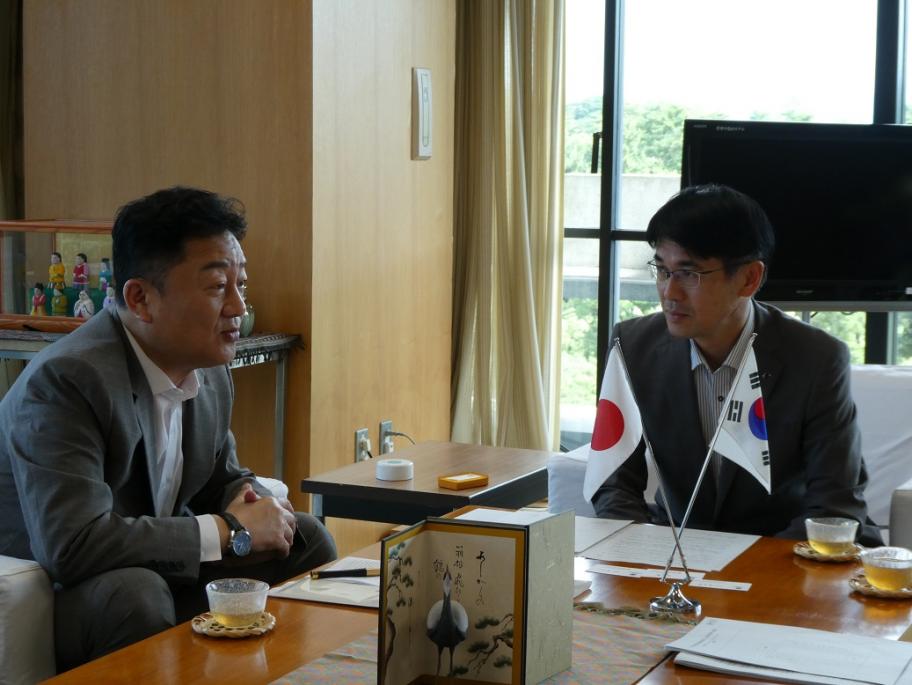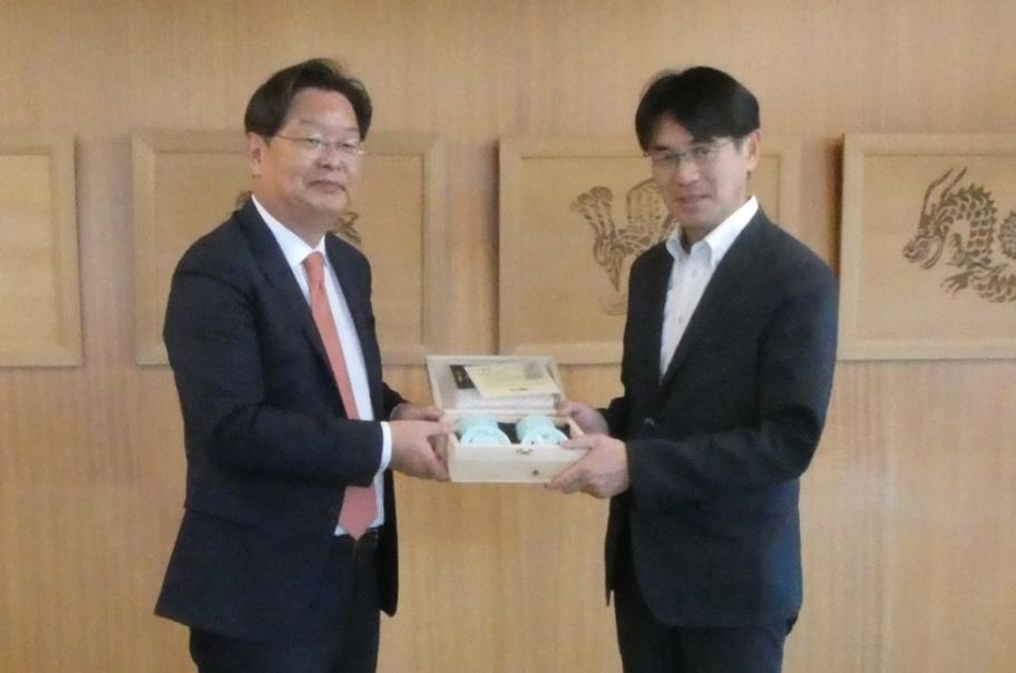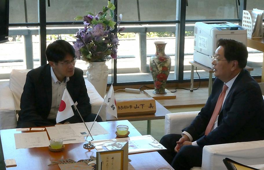 本日、韓国・忠清南道のキム・テフム知事を団長とする訪問団が、今後の友好交流を図るため、山下知事を表敬訪問されました。