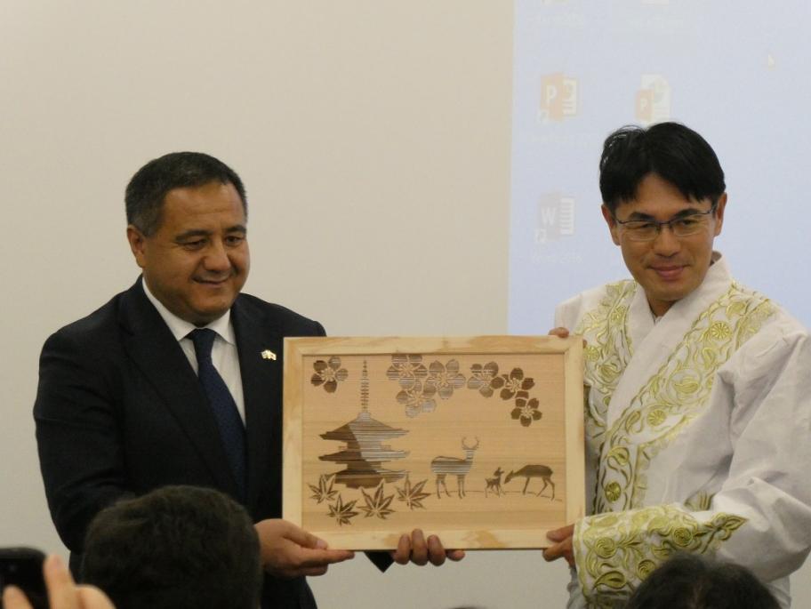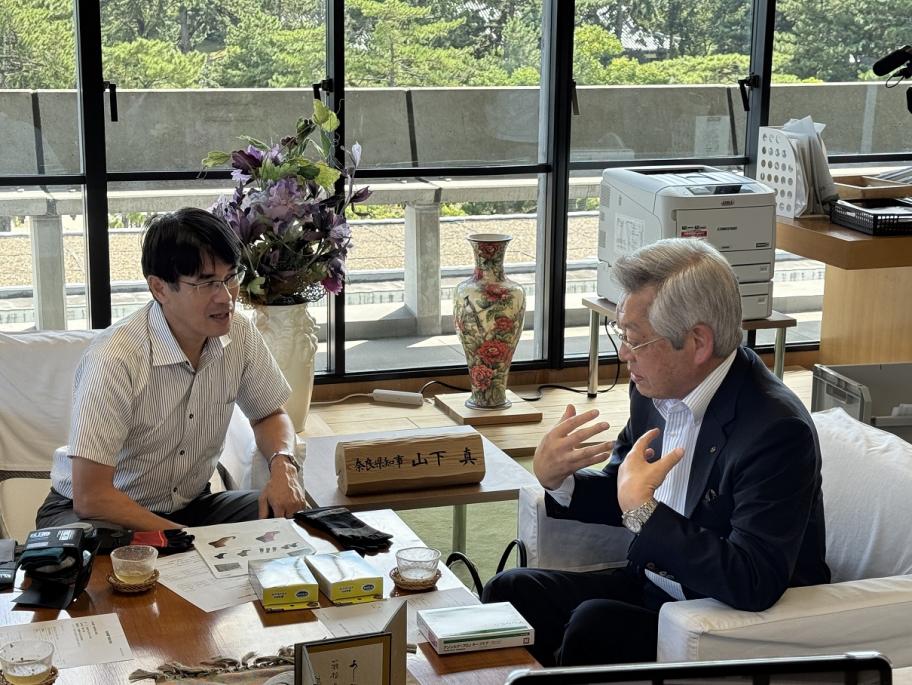 7月1日、コンベンションセンターで開催している奈良×ウズベキスタン友好交流フェスタにあわせ、アブドゥラフモノフ駐日大使が山下知事を表敬訪問されました。