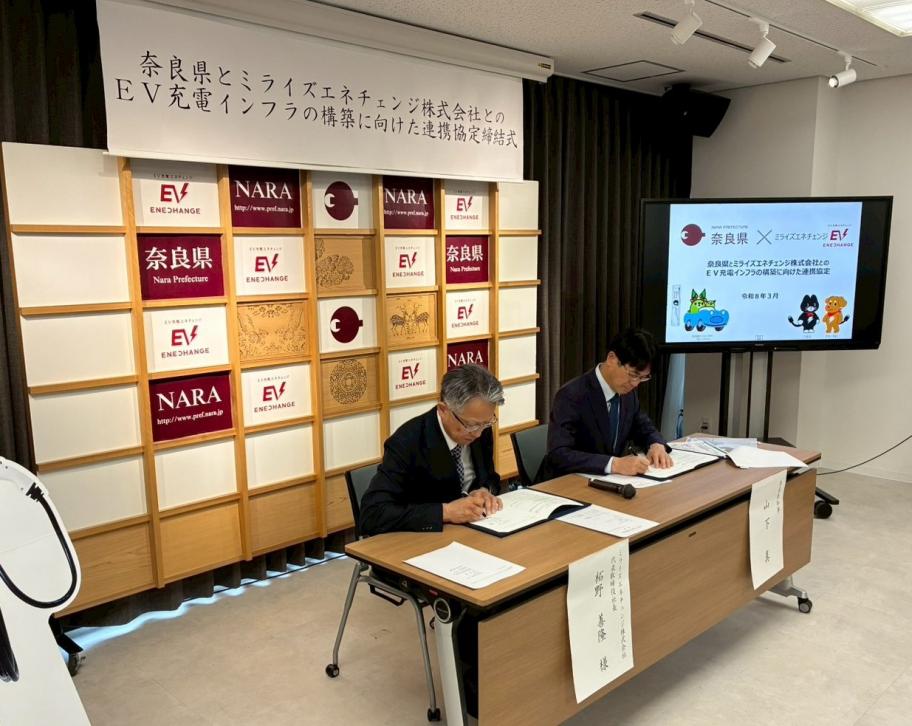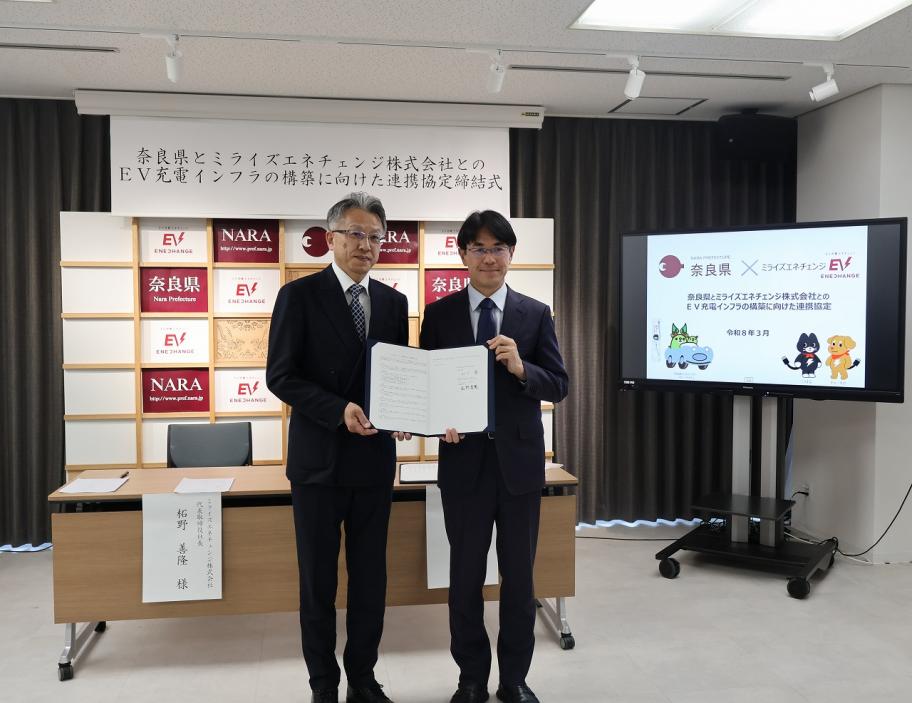 ミライズエネチェンジ株式会社との「EV充電インフラの構築に向けた連携協定」を締結しました。本協定締結を契機に、県有施設・宿泊施設等へのEV普通充電器の導入による県内のEV充電インフラの充実を図るとともに、イベント等を通じたEVの普及促進等に取り組みます。