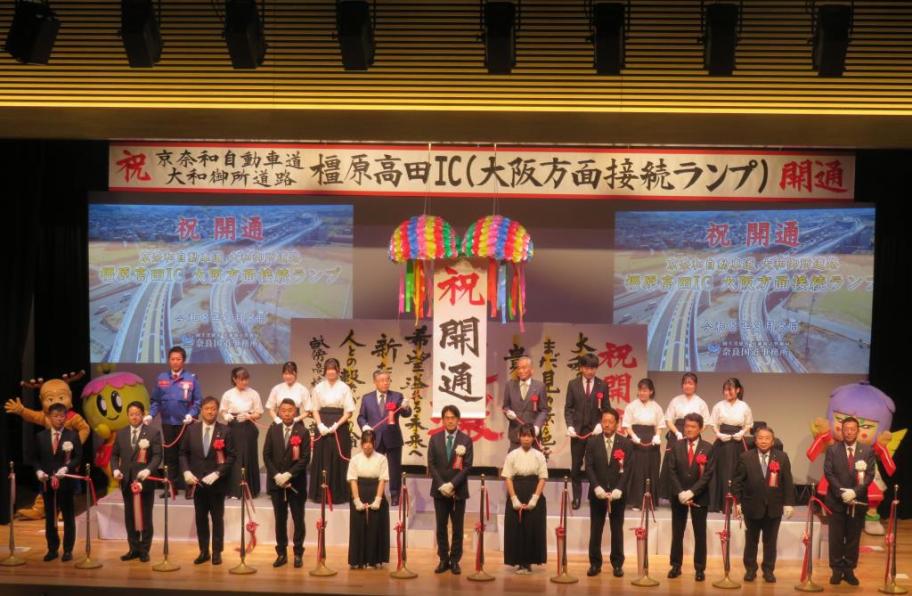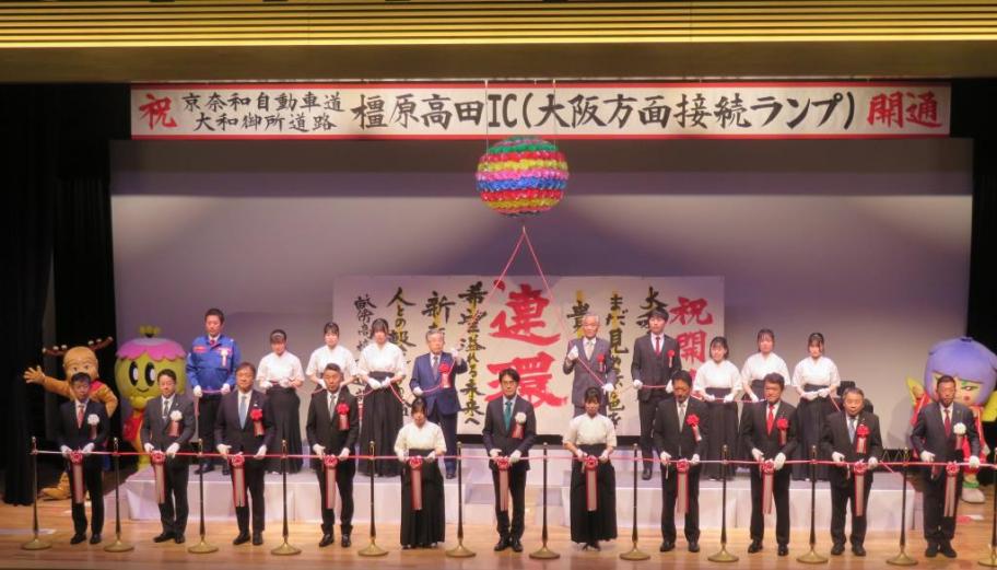 京奈和自動車道 大和御所道路 橿原高田IC(大阪方面接続ランプ)の開通式典が橿原市内で開催されました。