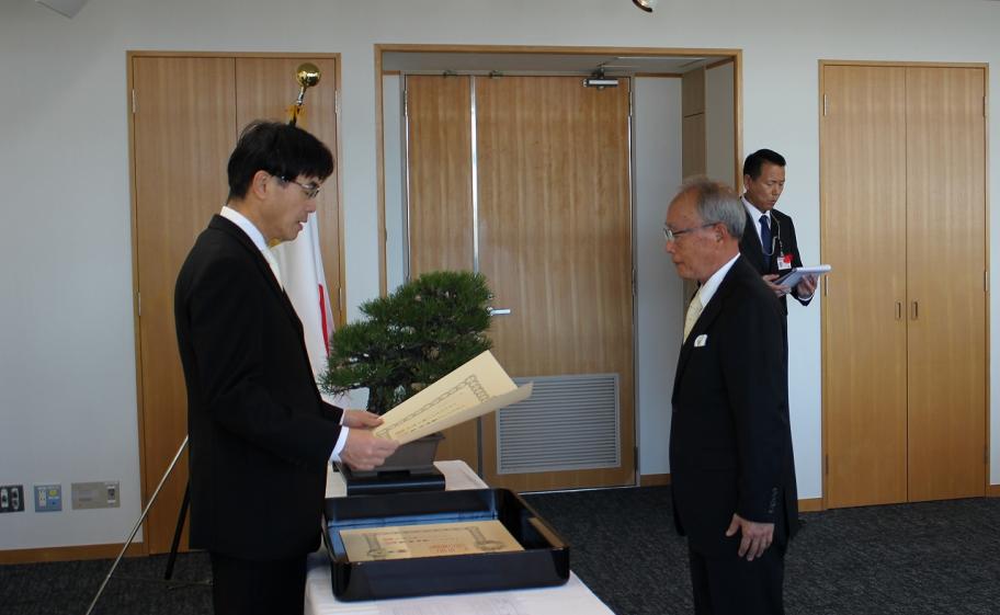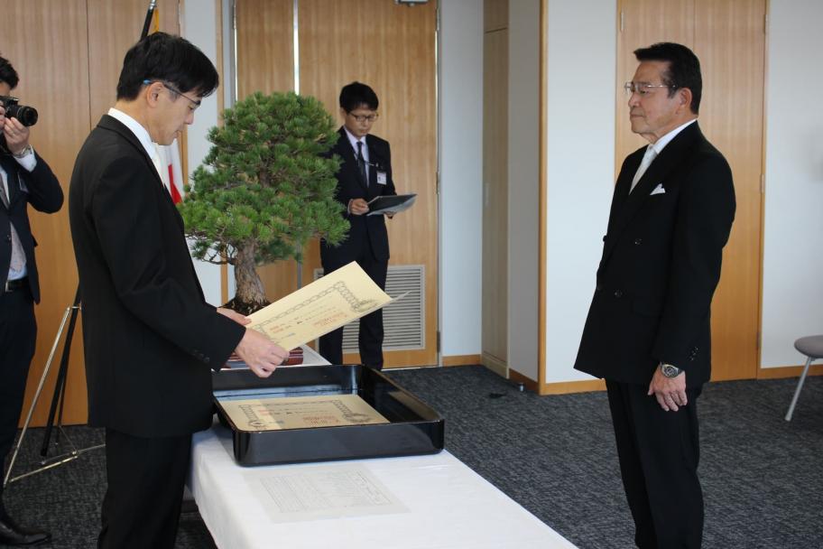 山下知事が公衆衛生関係優良施設・生活衛生事業功労者・公衆衛生事業功労者の表彰式に出席し、衛生管理など模範となる施設、生活・食品衛生、公衆衛生に功績のあった個人に対し感謝を表明し、表彰状を贈呈しました。