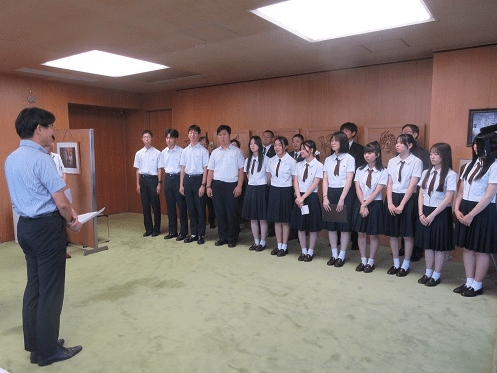 第98回選抜高等学校野球大会に出場される智辯学園高等学校の代表選手・学校関係者・高校野球連盟関係者が山下知事を表敬訪問されました。智辯学園高等学校は、5年ぶり15回目の出場となります。主将が決意表明し、山下知事が激励の言葉をかけ記念撮影を行いました。