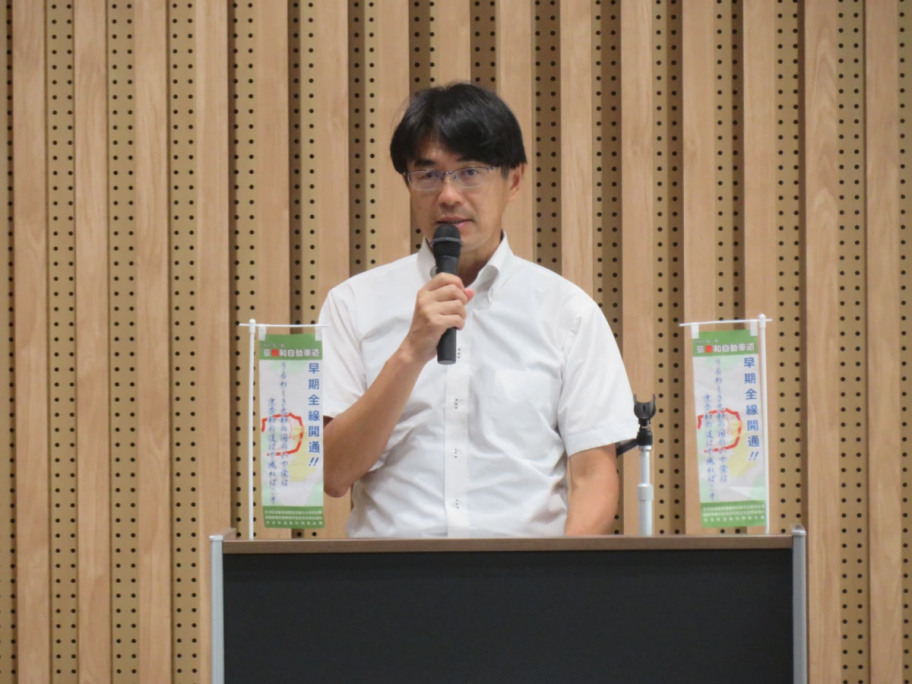 山下知事は挨拶の中で、京奈和自動車道の早期全線開通に向けて、会員の皆様方と一致団結し、引き続き国に対し要望を行っていくと述べました。